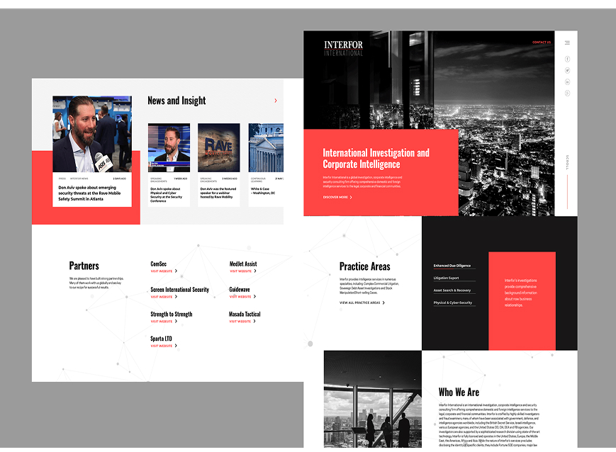 Interfor International, a leader in global risk management and security, needed a digital presence that reflected its elite reputation and complex service offering. The challenge was to craft a design system that would instill trust, project authority, and communicate precision to a discerning global audience, without compromising on aesthetic clarity or brand cohesion.