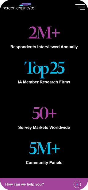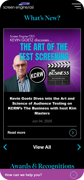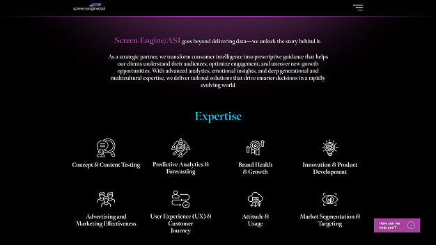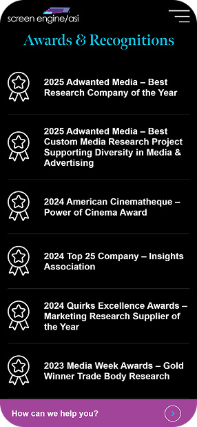 Screen Engine/ASI is a research and data analytics firm focused on maximizing market potential while assessing risk for clients in the entertainment and media industries. Serving as a client-oriented resource for marketing research and insights, the company emphasizes expertise across the four screens of media: theatrical movies, television, computer, and mobile. Their approach helps clients identify opportunities, mitigate risks, and make data-driven decisions with confidence.